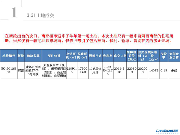 关键词为:2015年3月31日南京土地成交信息分析